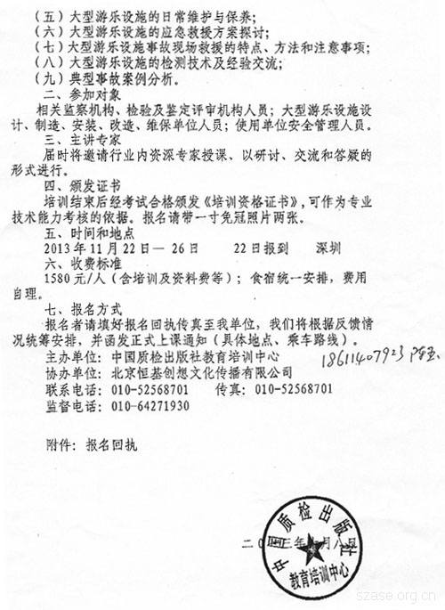 關(guān)于舉辦“《大型游樂(lè)設(shè)施安全監(jiān)察規(guī)定》及游樂(lè)設(shè)施安全管理與典型事故案例分析”培訓(xùn)班的通知