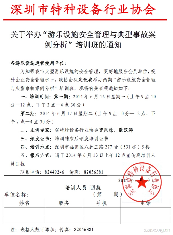 關于舉辦“游樂設施安全管理與典型事故案例分析”培訓班的通知