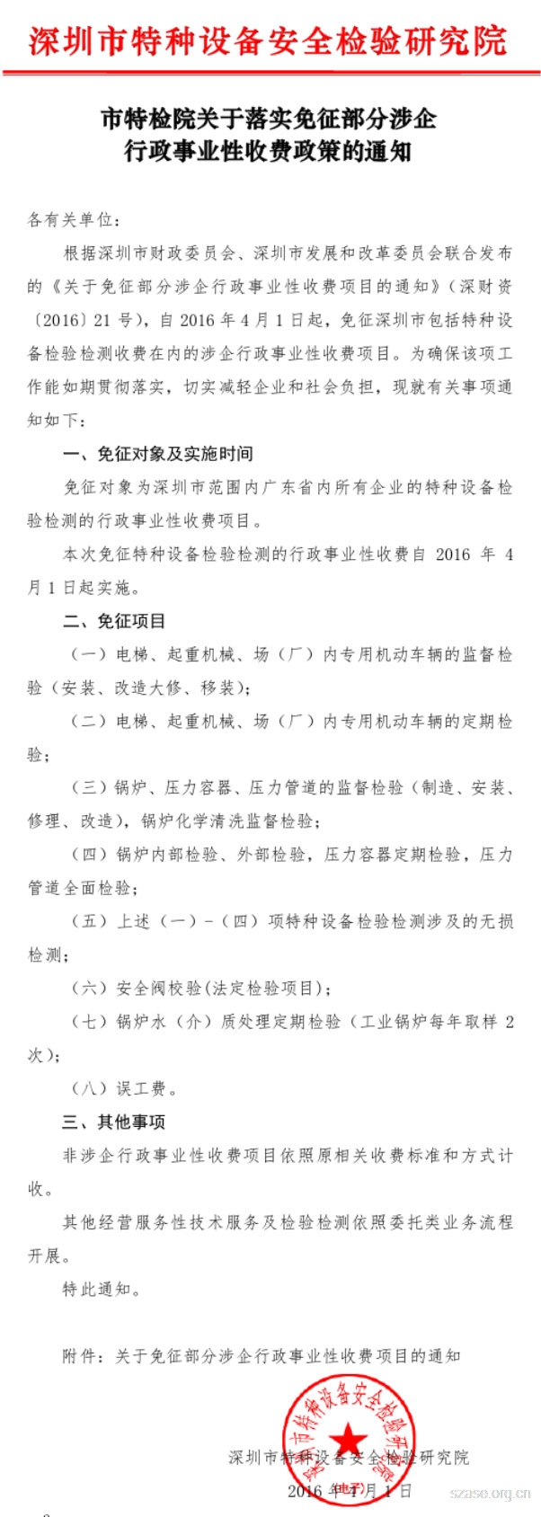 市特檢院關于落實免征部分涉企行政事業性收費政策的通知