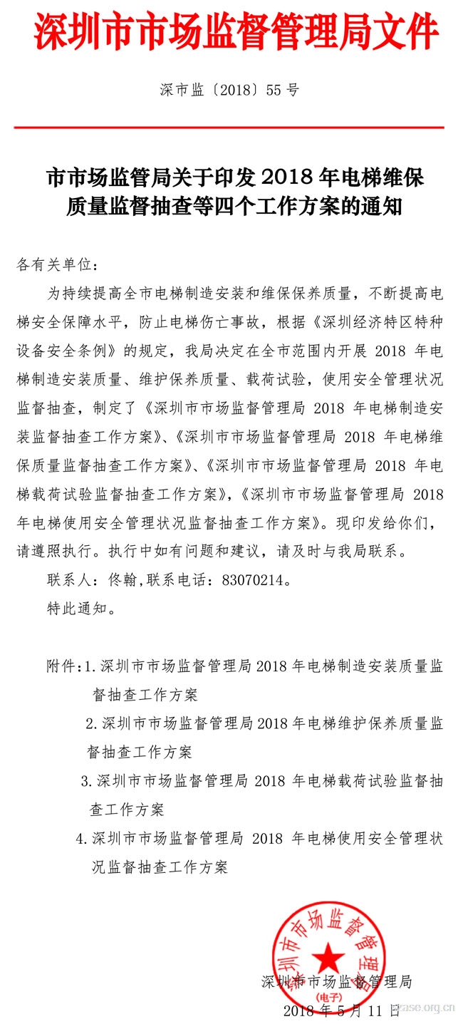 市監局關于2018年電梯維保質量監督抽查等四個工作方案通知