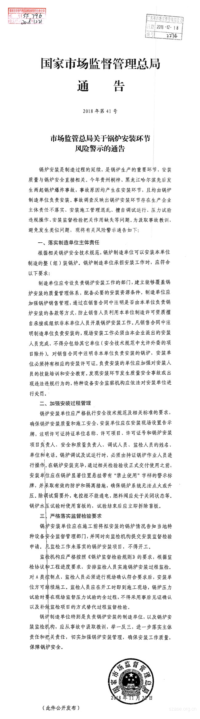 點擊下載:關于鍋爐安裝環節風險警示的通告(2018年第41號)
