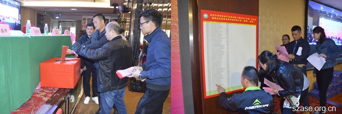根據會議中審議通過的《深圳市特種設備行業協會第六屆會員大會換屆選舉辦法、換屆選舉工作人員名單》的規定,換屆選舉工作總監票人宋小霞主持換屆選舉投票工作,深圳市特種設備行業協會目前共有會員273家,參加本次選舉投票的會員有238家,實際發出選票為201張選票,回收201張選票,理事會有效選票為189張,監事會有效選票為185張,無記名差額選舉第六屆理事會成員,理事候選人為57名,差額選舉產生56名理事;監事候選人為4名,差額選舉產生3名監事。投票選舉產生汪青根為會長,唐紅凱為常務副會長,吉達電梯、榮華機電、中海電梯、南海工程等16家副會長單位,同大機電、奧的斯電梯、菱電電梯等38家理事單位等組成特協第六屆理事會,會議選舉深圳市安承電梯有限公司為監事長單位、臺菱電梯和美迪斯電梯為監事單位,組成特協第六屆監事會。本次選舉遵循了“公平、公正、公開”的原則,各項表決程序符合協會章程和相關法律法規、合法有效。