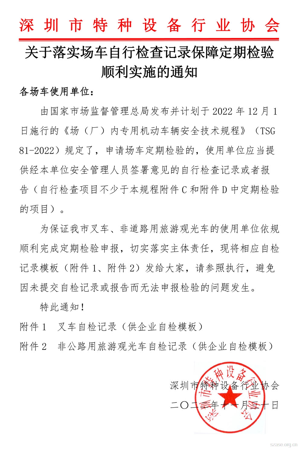 關于落實場車自行檢查記錄保障定期檢驗順利實施的通知