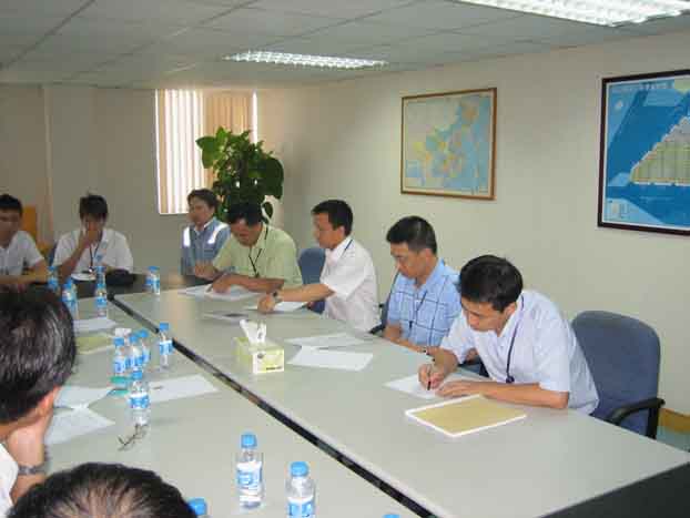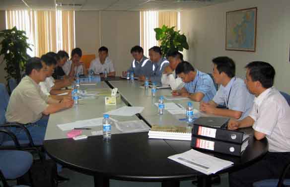 2007年6月27日上午SCT工程技術部會議室,現場復評工件的首次會議由專家組陳珍春組長主持,陳珍春組長分別介紹了評價依據、評價小組成員分工和評價計劃安排;申明評審專家應遵循客觀、公正、保密三大原則。SCT工程技術部騰吉才經理介紹評價準備情況和自評情況并安排聯絡員及落實現場評價工作場所和各項配合工作;工程技術部李斌系統策劃主任結合幻燈片的播放向專家組簡要介紹《SCT特種設備安全管理手冊》。特協和南山分局的相關人員參加了首次會議。