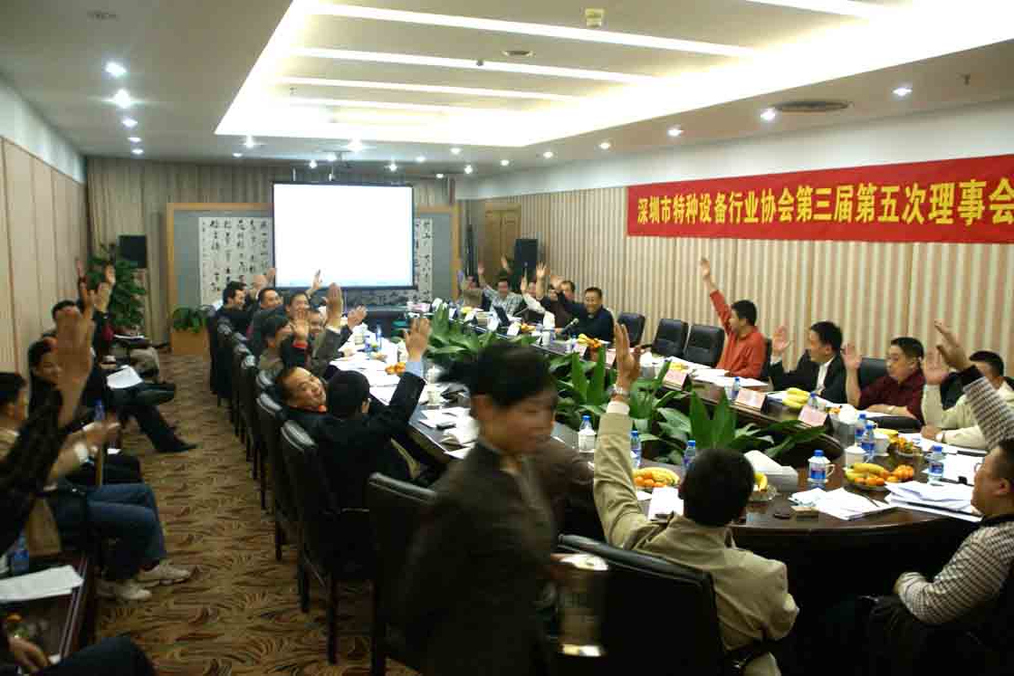 深圳市特種設備行業(yè)協會第三屆第五次理事會議于2007年12月07日下午在市投資大廈四樓會議廳舉行。會議由汪青根會長主持,協會副會長、常務理事、理事、監(jiān)事單位全部派員出席此次會議。