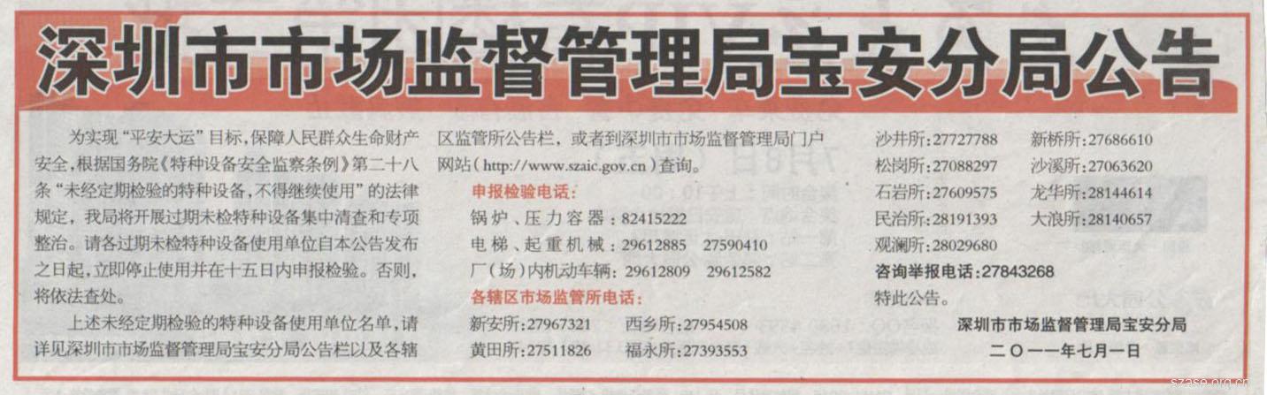市監寶安分局開展開展過期未檢特種設備集中清查和專項整治