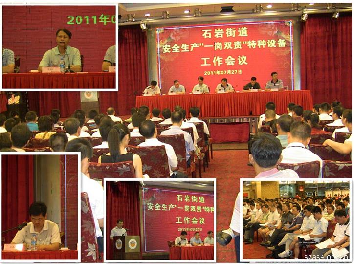 為進(jìn)一步保障轄區(qū)特種設(shè)備使用安全,繼續(xù)推進(jìn)安全生產(chǎn)“一崗雙責(zé)”活動(dòng),實(shí)現(xiàn)“迎大運(yùn)、保平安”的目標(biāo),2011年7月27日,市場(chǎng)監(jiān)督管理局寶安分局石巖所舉辦了石巖街道安全生產(chǎn)“一崗雙責(zé)” 特種設(shè)備工作會(huì)議。寶安分局黃耀忠副局長(zhǎng)、特設(shè)科科長(zhǎng)彭旭旻、石巖街道辦事處李育基副主任、張建安副主任、安監(jiān)辦負(fù)責(zé)人、石巖所負(fù)責(zé)人及石巖街道各特種設(shè)備使用單位代表等共400余人參加了此次會(huì)議。